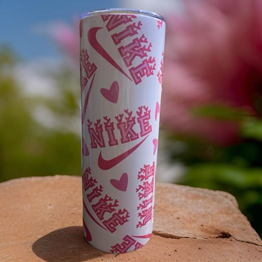 This Pink Nike tumbler features a super cute design with hearts, making it both girly and stylish. Made with stainless steel, it keeps drinks hot or cold all day long. Stay fashionable and hydrated with this unique tumbler.