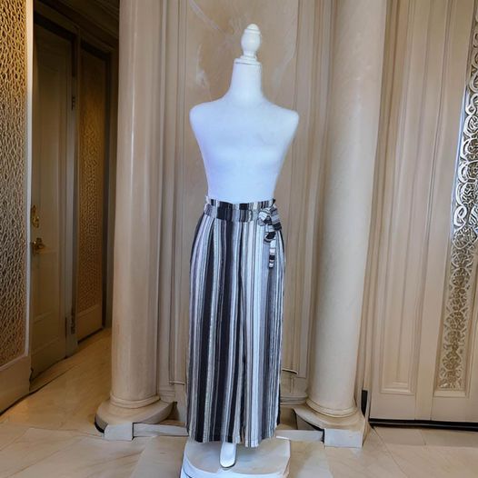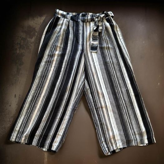 Mutli colors black/white/light gray/dark gray and touch of tan. These expertly designed Pinstripe Wide Leg Pants are ideal for a professional wardrobe. The elegant wide leg offers a stylish and sophisticated look, while the elastic waist and decorative tie provide a comfortable fit. With a length of 33 inches and an inseam of 22 inches, waist 30 inches these lined pants are perfect for the workplace.