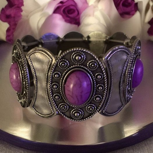 Be a trendsetter with this stylish Purple Crackle Stone Bracelet. Crafted from a stretchy silver material in an antique style, this bracelet will add a unique edge to any outfit.