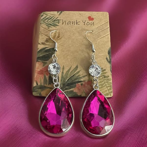 RASPBERRY TEAR DROP EARRINGS