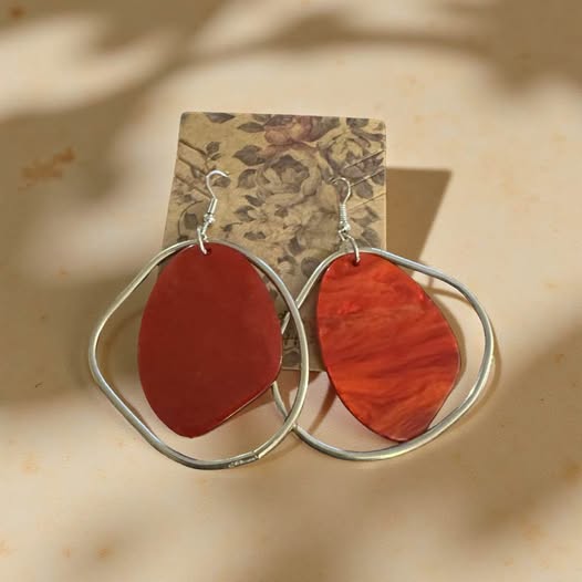 Add a pop of color and fun to any outfit with these playful red acrylic earrings. Featuring a vibrant red acrylic center that dangles freely inside a quirky silver circle, they bring a unique twist to your accessory collection. Perfect for those who love bold, eye-catching style with a touch of whimsy.