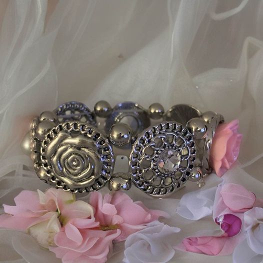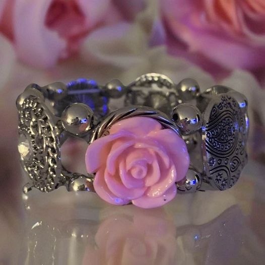 This Rose Silver Bracelet is a high-quality accessory, perfect for any occasion. Its intricate designs and rhinestones make it sparkle with beauty. Crafted from a stretchy silver material, the bracelet features a stunning pink rose centerpiece to create a unique and elegant look.