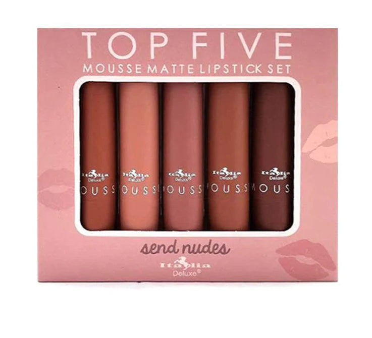 The Send Nudes Top Five offers a perfect selection of five smooth nude shades. Its neutral tones provide natural looks for all occasions, perfect for creating effortless looks with a subtle hint of color.