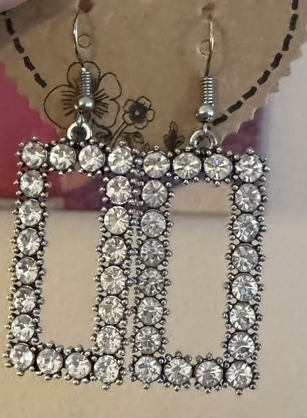 SILVER RHINESTONE RECTANGLE EARRINGS