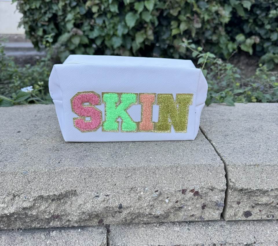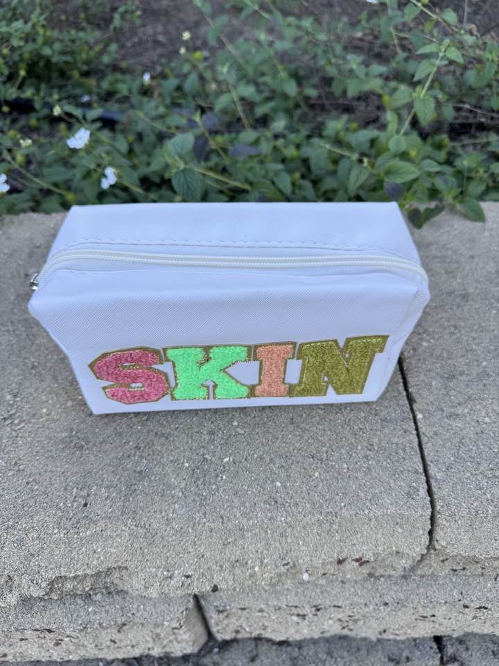 Store your skincare products in style with our super cute Skin Patches Make Up Bag. Featuring adorable patches and a spacious design, this bag is perfect for traveling or everyday use. Say goodbye to boring makeup bags and hello to cuteness and convenience!