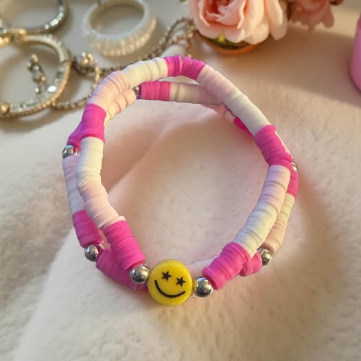 Add a splash of fun to your outfit with this playful pink stretchy bracelet featuring a cheerful smiley face at its center. Its comfortable stretch design fits all wrists, making it perfect for everyday wear or brightening up any look with a joyful vibe.