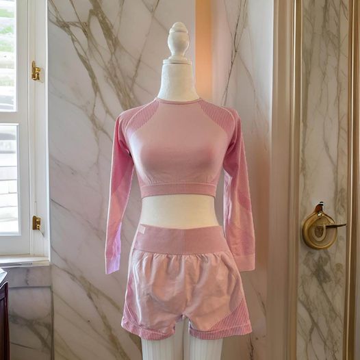 Upgrade your workout wardrobe with our Spandex workout set. Available in your choice of gray or pink, this set will have you looking super cute while you sweat it out. Made with high-quality spandex, these workout pieces provide great stretch and comfort. Available in size medium.
