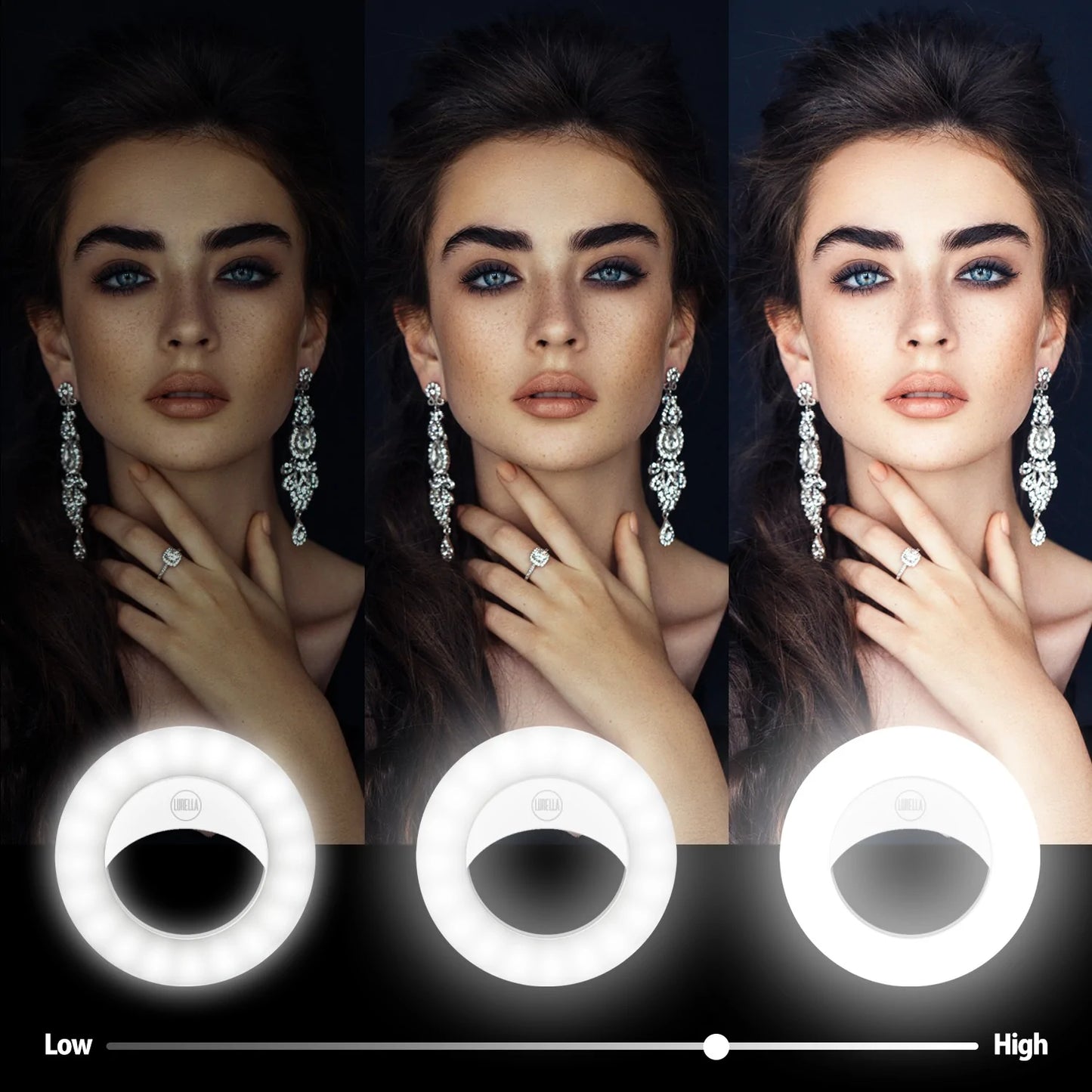 Take charge of your mood lighting with our Selfie Ring Light. The perfect selfie companion, this ring light gives you great selfies (or any other photos) anywhere!