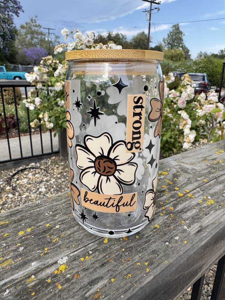 Hydrate with a side of empowerment! This 16oz glass cup serves daily reminders that you're STRONG, FEARLESS, and BRAVE with every sip. Complete with a glass straw for eco-friendly sipping adventures! There's a tiny imperfection hiding at the bottom (our little secret) which means you score this confidence-boosting cup at a special discount. Who knew staying hydrated could be so inspiring? Cheers to being awesome!