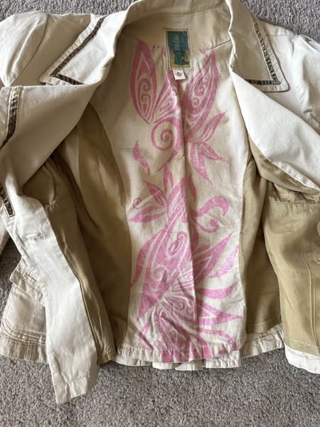 This super cute tan/brown petite jacket is perfect for dressing up or down with ease! Previously loved, it has a small stain in the armpit that’s hidden when worn—an expert could likely remove it. With a length of 20.5 inches, a 28.5-inch waist, and 16.5 inches from armpit to armpit, this charming piece fits just right for a playful, stylish look.