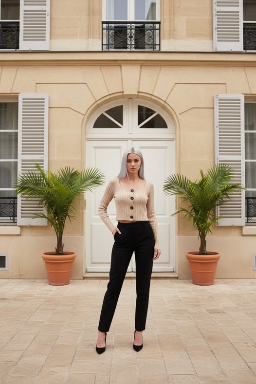 This tan crop sweater features adorable brown buttons down the front for a charming, playful look. Measuring 17 inches from shoulder to hem and 15 inches across from armpit to armpit, it’s the perfect cozy fit for size M. Pair it with your favorite high-waisted jeans for a fun and flirty outfit!