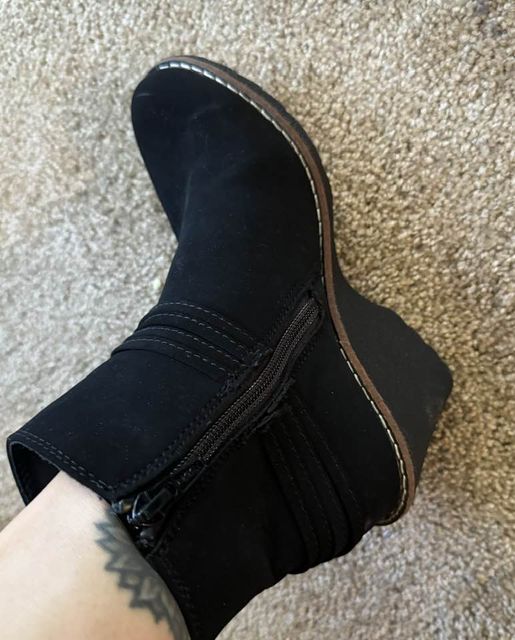 Elevate your style with our Western Black Booties. Made with soft velvet and a small heel, these booties are the perfect addition to any outfit. Complete with a convenient side zipper, they are both practical and trendy. Perfect for a casual day out or a night on the town.