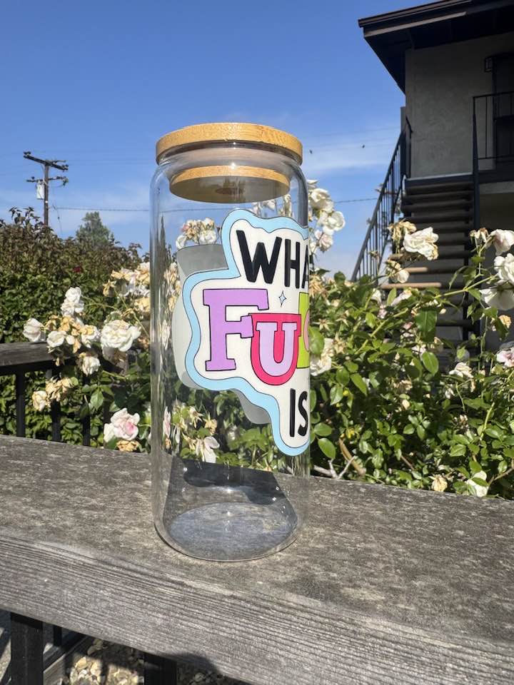 Turn heads and spark laughter with our "WHAT THE FUCKERY IS THIS?" glass cup! This hilarious 20oz vessel comes complete with a stylish glass straw for sipping in style. Watch as people do double-takes when they spot your boldly honest drinkware. Perfect for making mundane moments memorable and adding a splash of personality to your hydration routine!