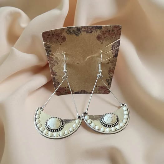 Add a touch of magic to your look with these playful silver half moon earrings, featuring dazzling white crackle stones both edged and centered for a sparkling surprise. Perfect for brightening any outfit with a hint of celestial charm!