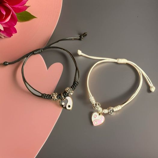The Ying Yang Heart bracelet features a delicate ying yang design on a white or black pullcord, adorned with a charming pink/white or black/white heart. This unique accessory is perfect for adding a touch of cuteness to any outfit. BIN 3